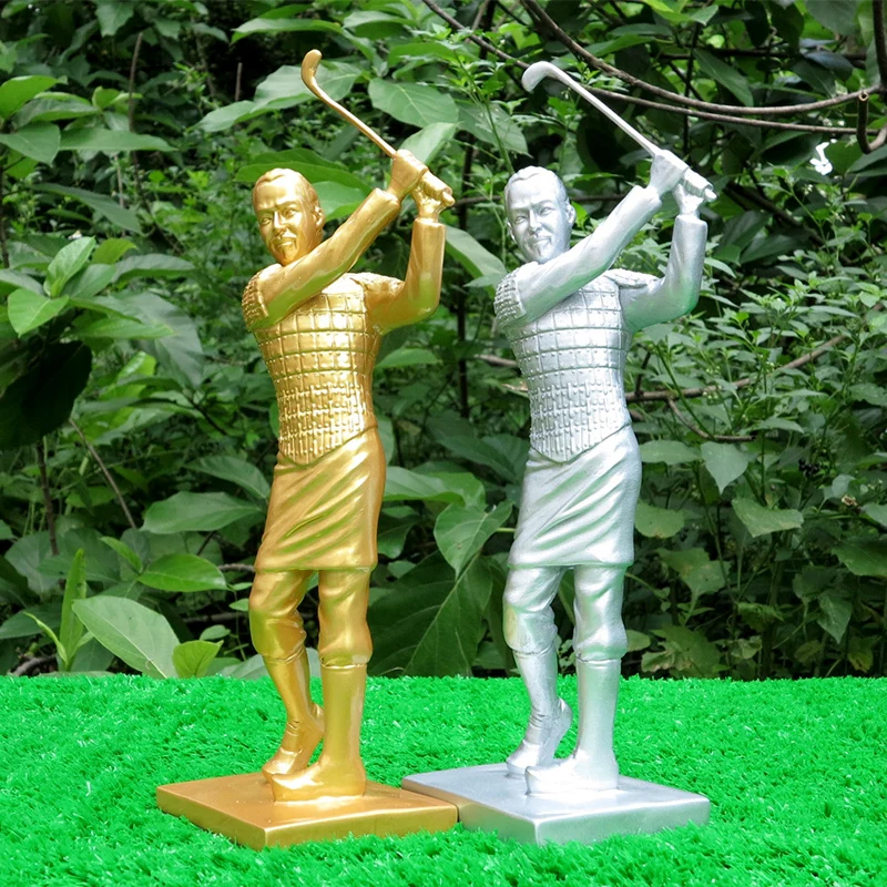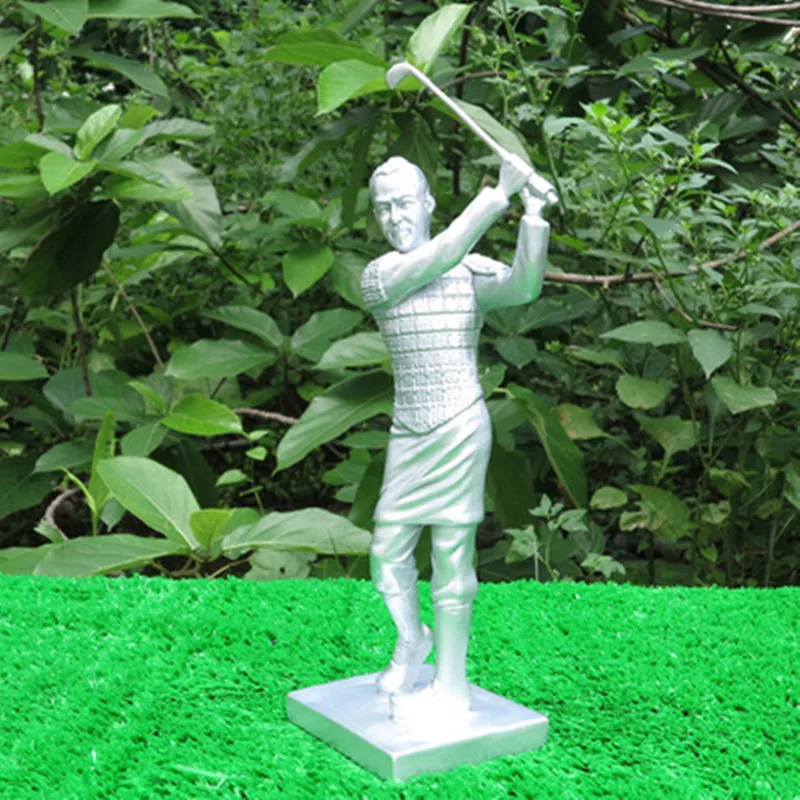 HIGH QUALITY Creative Plating Playing Golf Terra-Cotta Warriors Resin Sculpture Living Room TV Cabinet Artwork D