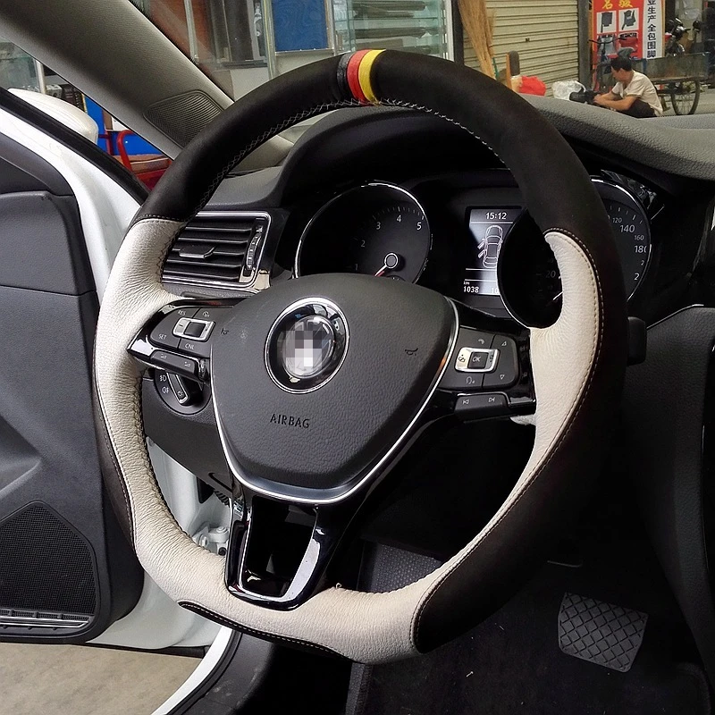 Shining wheat Hand-stitched Steering Wheel Cover for Volkswagen VW Golf 7 Mk7 New Polo Jetta Passat