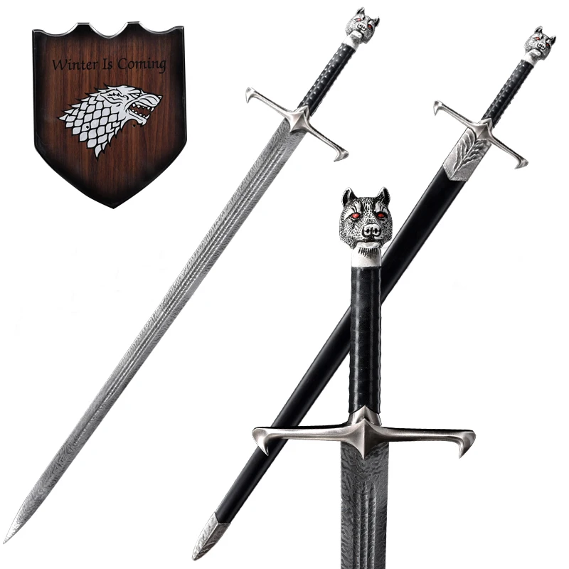 Fantasy swords for Movie prop Jon and Snow's sword stainless steel blade golf cap wooden sheath PU