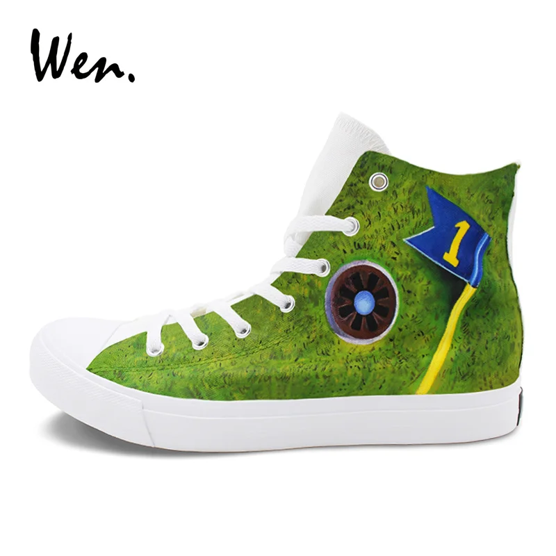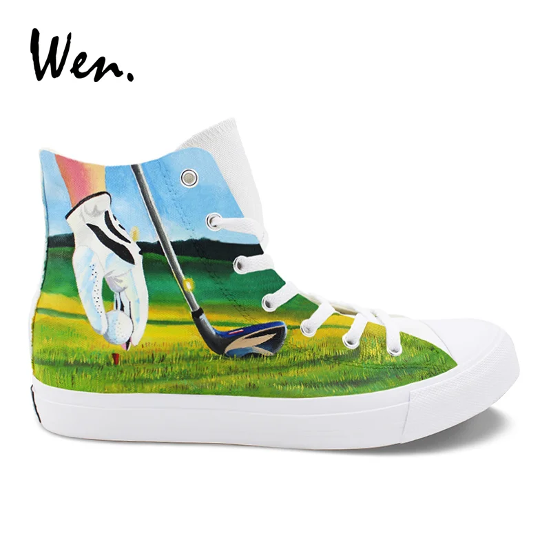 Wen Original Design Playing Golf Hand Painted Shoes Men Canvas Sneakers High Top Women Casual Shoes
